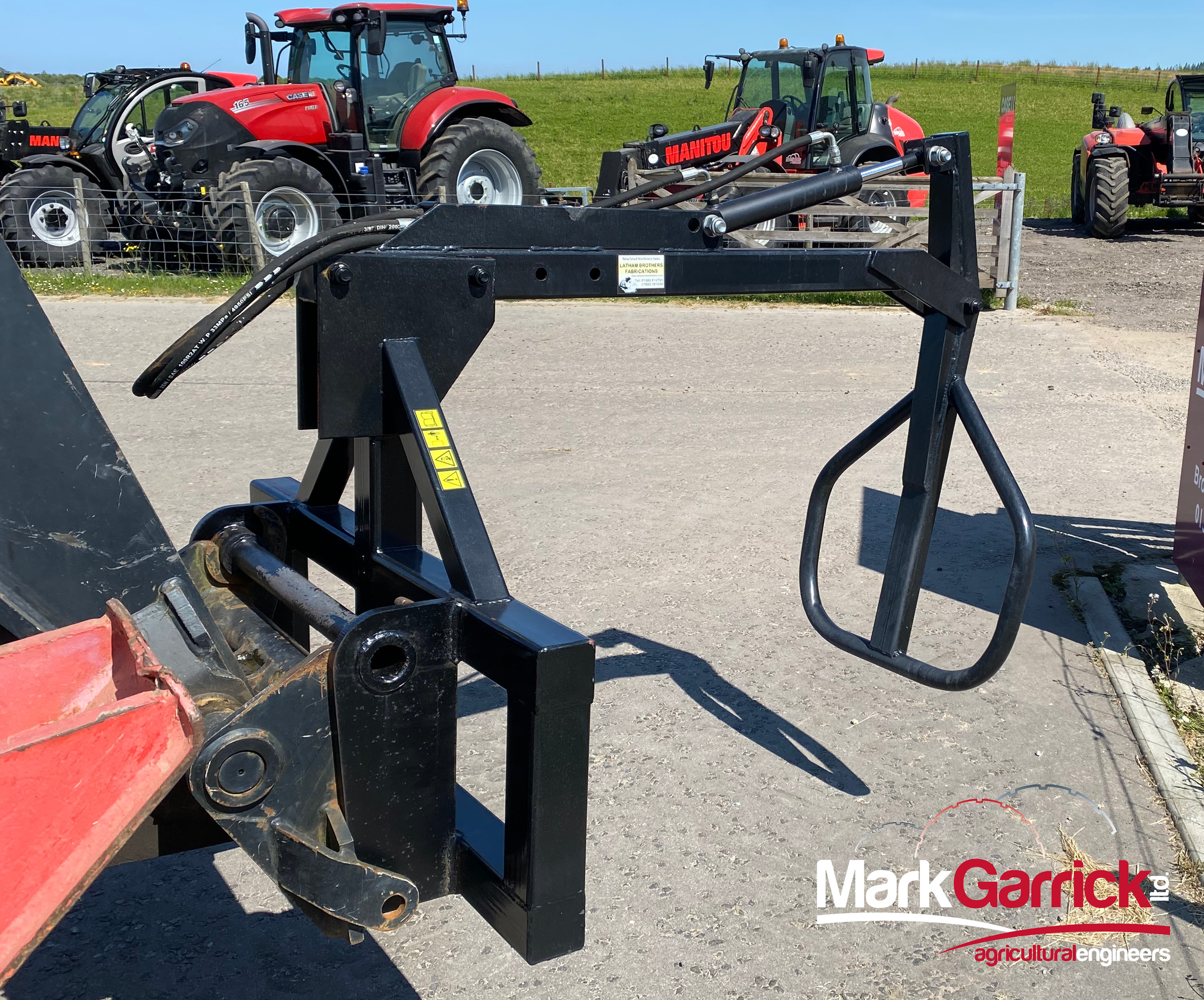 Used 2020 Rayson Bale Handler with Manitou brackets. Double acting hydraulic cylinder, adjustable to accommodate round or square bales. Like new condition.